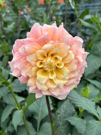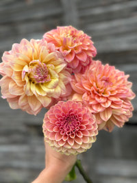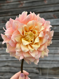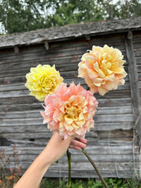 So fluffy and beautiful, Lee’s Sugaree is an absolute must grow! This dahlia truly deserves to be a unicorn. Blooms can range from lemon yellow to ballet pink. Lee’s Sugaree is quite bushy and grows to an approximate height of 4 feet tall on our farm.